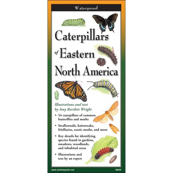 54 species- both common and exotic- with illustrations of the butterflies and moths they become. Life cycle basics explained, including egg, larva, pupa (chrysalis), and adult stages. Anatomy of a caterpillar.
